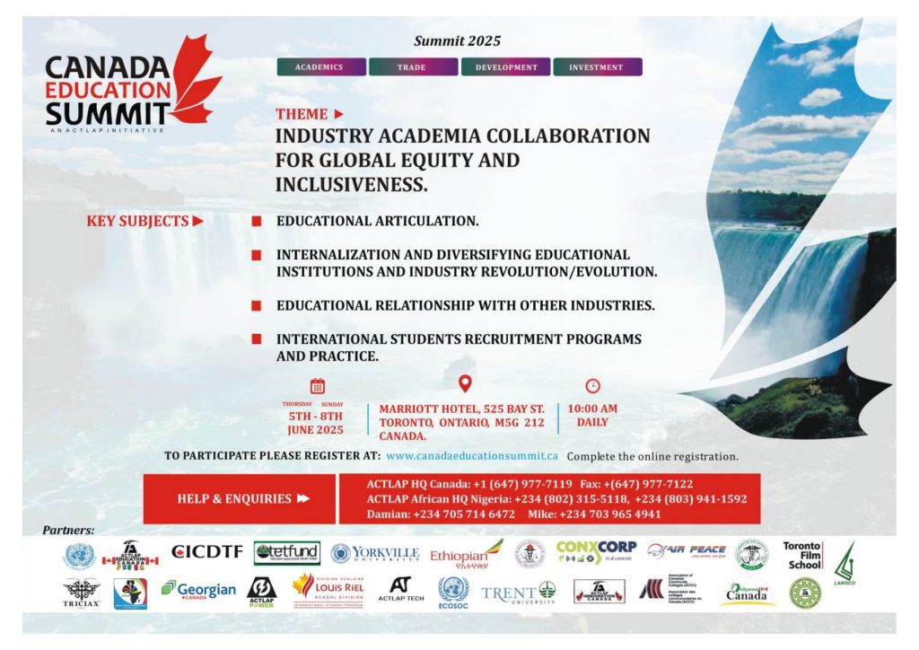 Canada Education Summit CES, is a subsidiary of ACTLAP (Canada); an acronym for African Computer & Technology Literacy Awareness Program. ACTLAP is a federally registered organization in Canada with a taste for quality education and a better living. ACTLAP’s idea for Canada Education Summit was conceived out of the dear need to restructure and step up the quality of education in Africa and the rest of the world where sound and quality education is deficient.